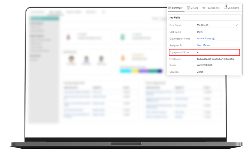 Den Engagement Score messen: Durch die Verbindung zwischen dem CRM-System und der Eventplattform, können durch automatisierte Anmeldeprozesse fehlenden Daten im CRM-System der WBG Schweiz komplettiert werden.